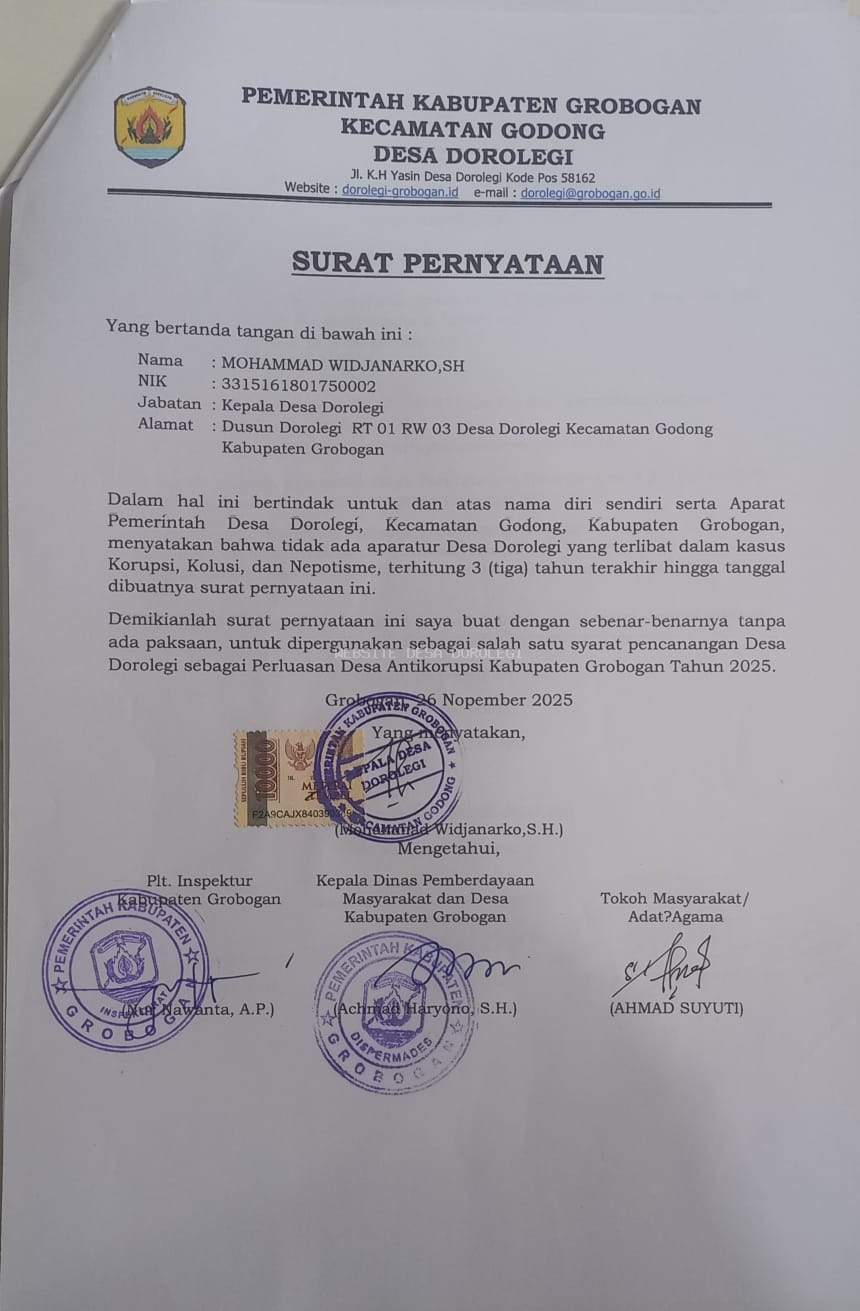 Pemerintah Desa Dorolegi Kecamatan Godong Kabupaten Grobogan menggelar...